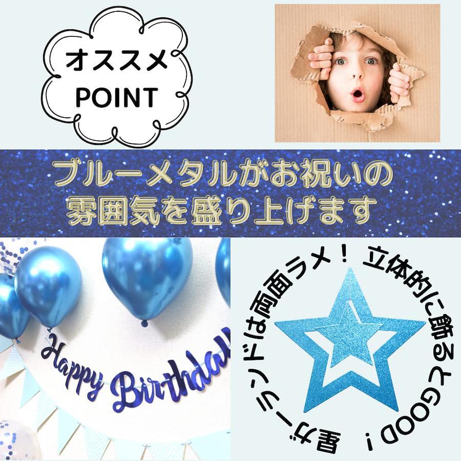 【豪華な17点セット】バースデーパーティーはこちらのセットにお任せ!立体的に飾ることでどなたでも華やかなパーティが演出できます。 セット内容は大小の星ガーランド×7,メタルカラーバルーン×4,コンフェッティバルーン×4,レターバナーガーランド×1,三角フラッグガーランド×1 【選べる4カラー】性別やご年齢、お好みに合わせてお色をお選びいただけます。ゴールド、シルバー、ローズゴールド、ブルーの4色です。 【煌めくラメ星ガーランド】星形のガーランドは両面がラメなので、天井に吊るすなど立体的に飾るとゆらゆらするたびに光り輝きパーティを一層盛り上げます。三角フラッグは硬く重なっていることがありますので、ご確認お願いします。 【日本で検品】La Kissaは日本人によるお客様目線の検品、袋詰めを行っております。風船はまれに小さな穴あきなどがある場合がございます。その際は予備をお使いください。 【安心の日本企業】の倉庫より迅速に発送致します。La Kissaは日本国内のブランドなので万一のアフターサービスも日本人が責任を持って対応致します。