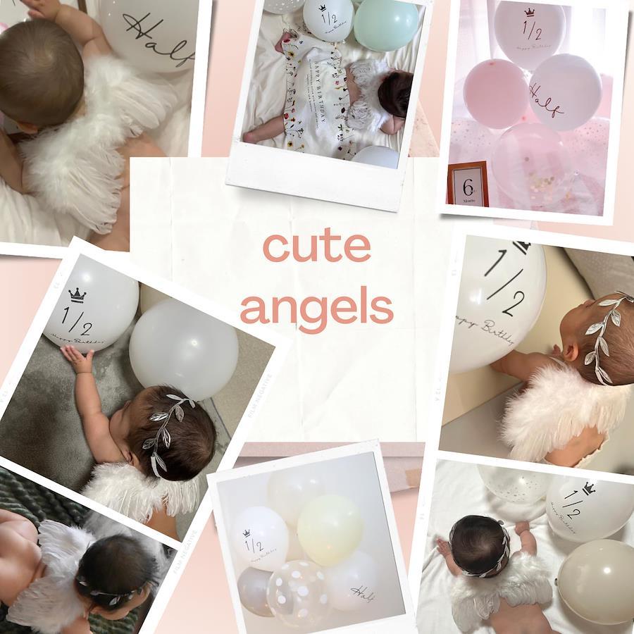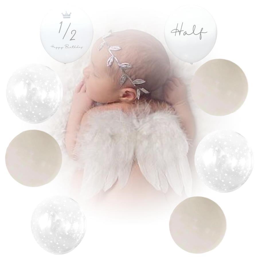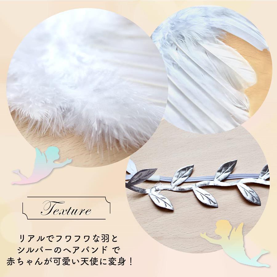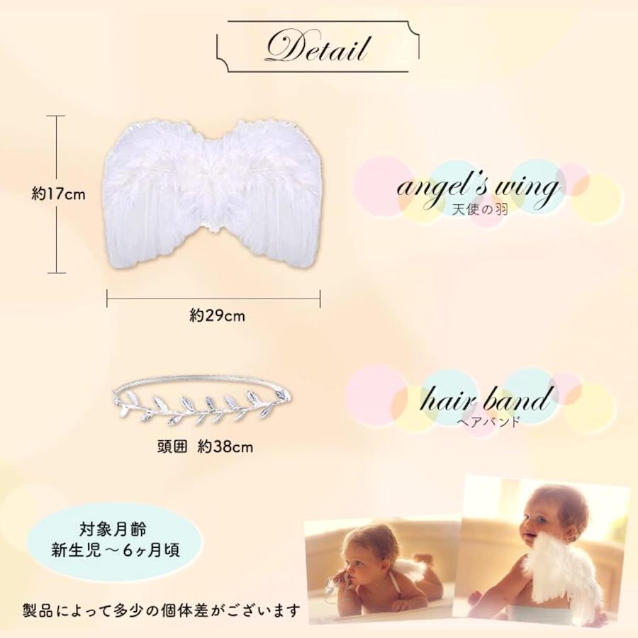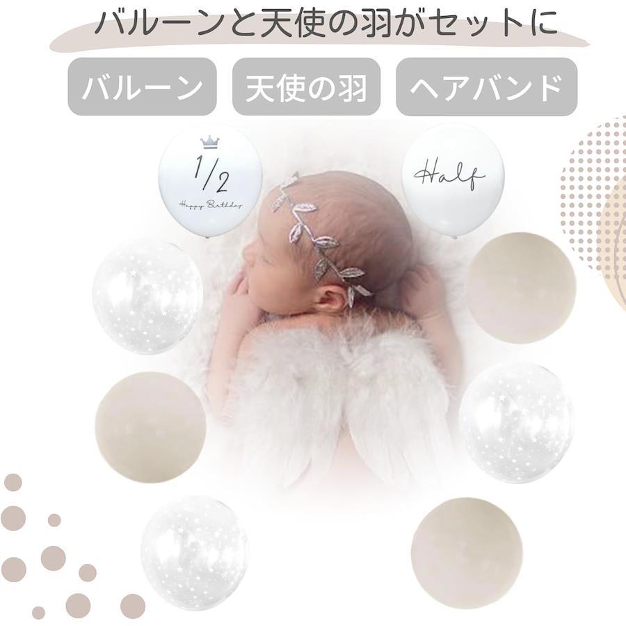 【オリジナル風船付き天使の羽】赤ちゃんのニューボーンフォトや寝相アート お昼寝アート ハーフバースデーで人気のエンジェルウィング。優しいニュアンスカラーの風船とクリアスターバルーン La Kissaオリジナルバルーンはシンプルなので赤ちゃんをより可愛く引き立てます。風船は床に転がしたり、壁に貼り付けたりしてもOK。【神秘的なエンジェルに変身】まるで本物のような羽は、ふわふわと柔らかい素材で赤ちゃんの肌をいためません。両肩に担ぐようにゴムに腕を優しく通して着用させてください。ヘアバンドは月桂樹をイメージして作られています。カラーはシルバー、一部はゴムで伸縮しますので赤ちゃんに負担をかけません。【赤ちゃんが安心のおうちスタジオでも】写真スタジオでの記念撮影もとても人気ですよね。近年ではおうちで記念撮影する『おうちスタジオ』が大人気でSNSにアップする方も増えてきました。お家ならではの安心感は、ベビーのかわいい写真が撮れる絶好のシュチュエーションです。ぜひ一生の思い出に残る記念写真を。お家の方も楽しい幸せなひと時を!【対象月齢】0~6ヶ月。新生児 生後1ヶ月記念やお食い初め ハーフバースデー バレンタインやハロウィンのコスチュームとしても最適です。【免責事項】メーカーによる商品リニューアルに伴いパッケージ(内容量も含む)変更が行われた場合、新パッケージでお届け致します事ご了承願います。