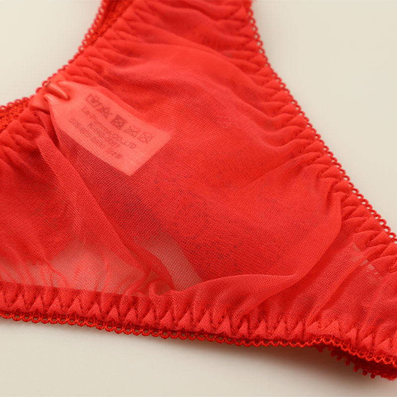 華やかで軽やかな質感を持ち、柔らかな触り心地と優美な透け感が魅力的でセクシーなシースルー素材の20ハーフ生地とストレッチレースを使用したハーフバックショーツになります。股上が凄く浅くなったローライズタイプの極小マイクロミニランジェリー。