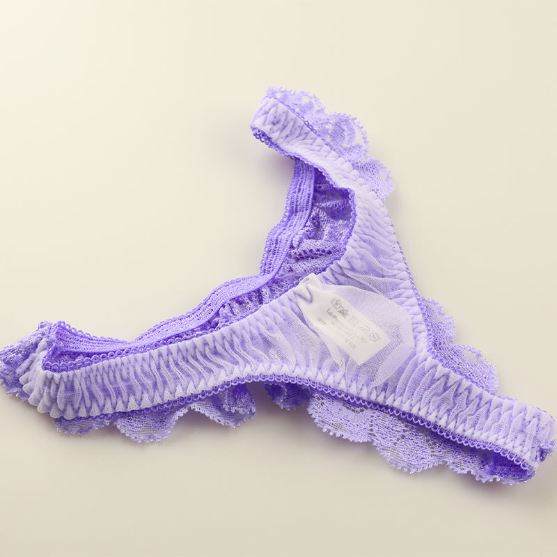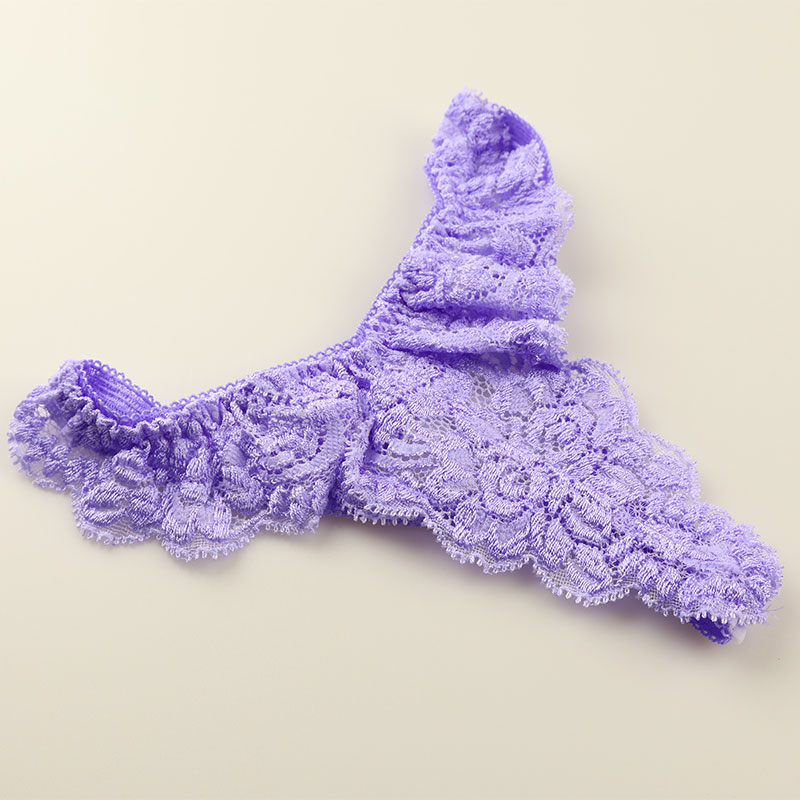 華やかで軽やかな質感を持ち、柔らかな触り心地と優美な透け感が魅力的でセクシーなシースルー素材の20ハーフ生地とストレッチレースを使用したTバックショーツになります。股上が凄く浅くなったローライズタイプの極小マイクロミニランジェリー。