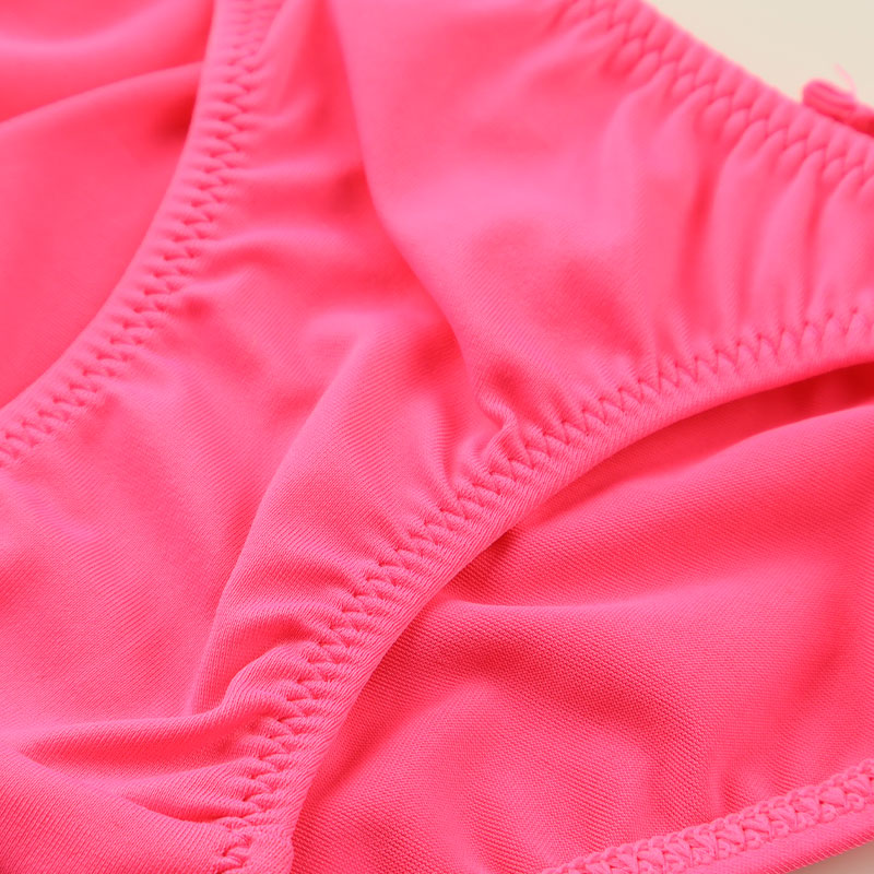 この生地は発色が豊かでハリがあり、触り心地が気持ちよく、さらに伸縮性が高いストレッチ素材のE6000生地を使用したフルバックショーツになります。股上が少し浅目になったローレグでサイドリボンタイプの脇ヒモランジェリーになります。