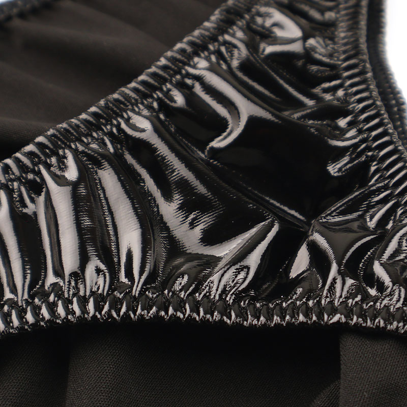 艶やかで光沢感のあるエナメル生地を使用したハーフバックショーツ。フロント部分が細くデザインされたTフロント仕様で、ヒップラインを美しく見せるハイカットスタイルになっています。無駄のないハーフバックシルエットがすっきりとしたラインを演出し、視覚的にもデザインを際立たせます。光沢のあるエナメル素材が光を反射し、存在感のある上品な輝きをプラス。軽やかでフィット感のある着用感で、特別な日や気分を上げたいときに取り入れやすいランジェリーです。Mサイズ:股上置き寸 約16cm。Lサイズ:股上置き寸 約18cm。