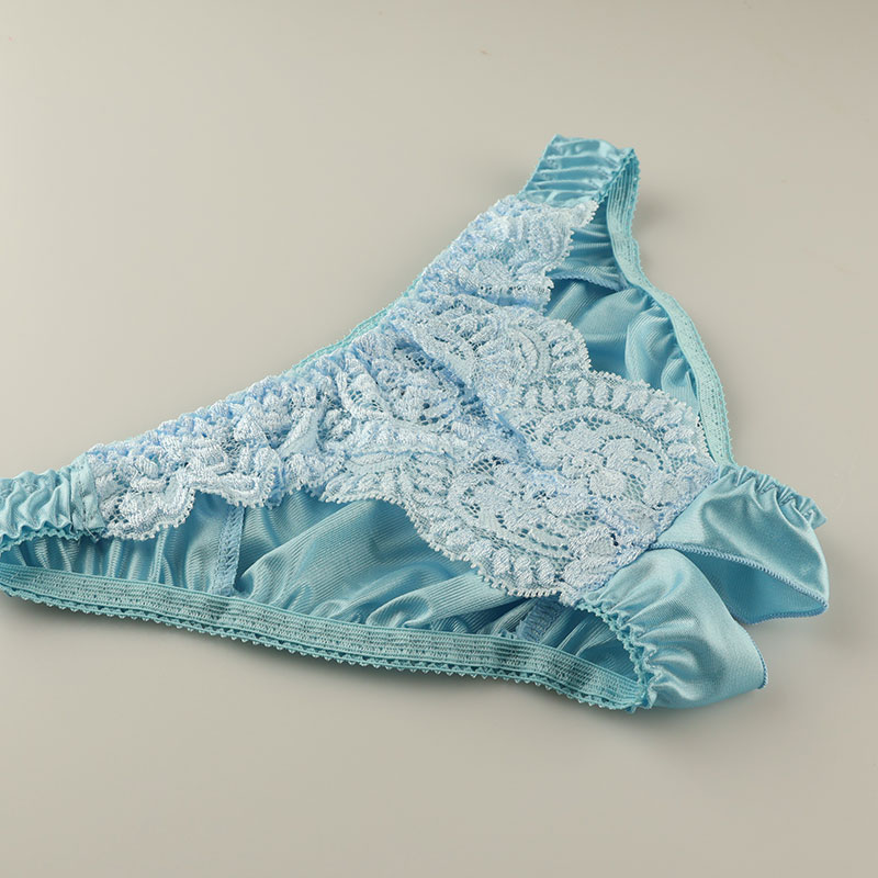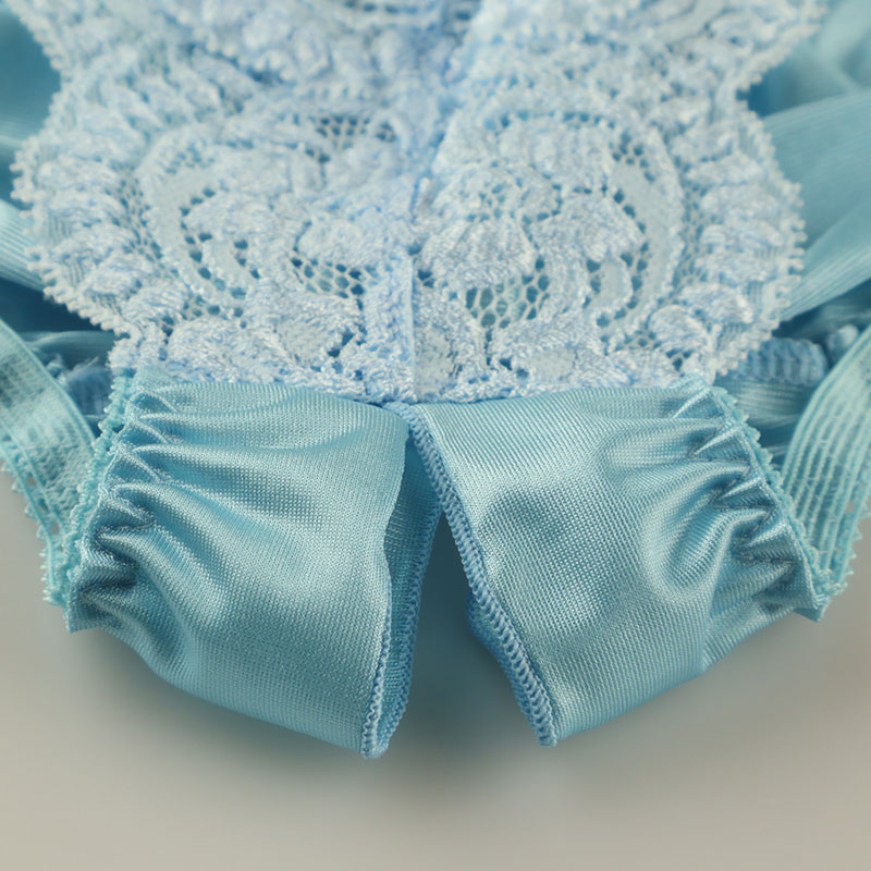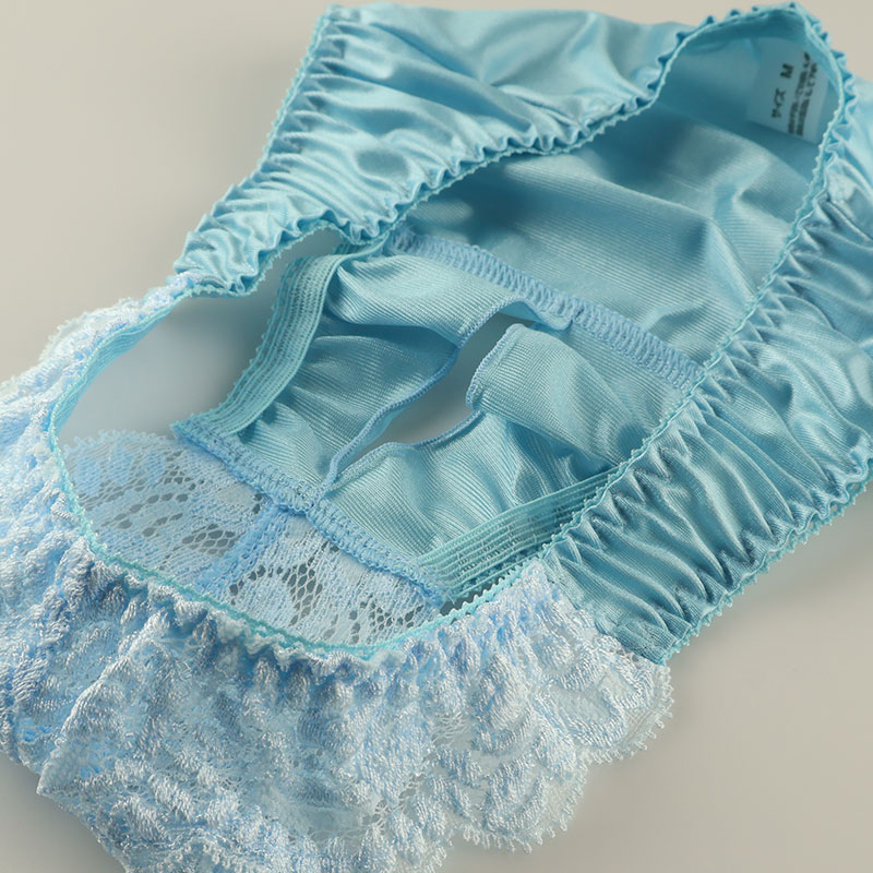 生地の表面に光沢感があり柔らかく気持ちのいい肌触りが特徴のフェリカ生地と透け感のあるストレッチレースのフルバックショーツになります。オープンクロッチになった大胆デザインの股ワレランジェリーになります。