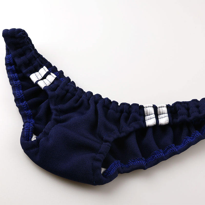 通気性が良く軽くて肌馴染みの良いジャージで使われている素材のSMS生地を使用したインゴムパンツになります。股上が浅く置き寸で約9cmになったスーパーローライズのブルマタイプスキャンティ。