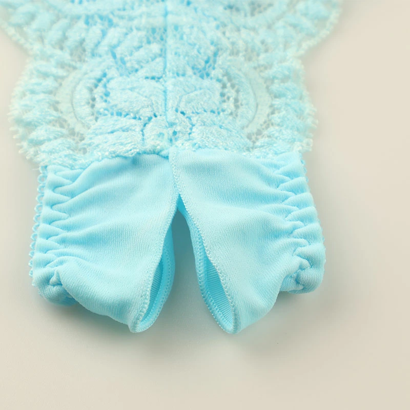しっとりとした滑らかな肌触りと同時に、心地よいサラサラ感が広がり、究極の快適さを提供する伸縮性に優れたSSS生地と透け感のあるストレッチレースを使用したTバックビキニショーツになります。オープンクロッチになった大胆デザインのセクシー股ワレランジェリー。