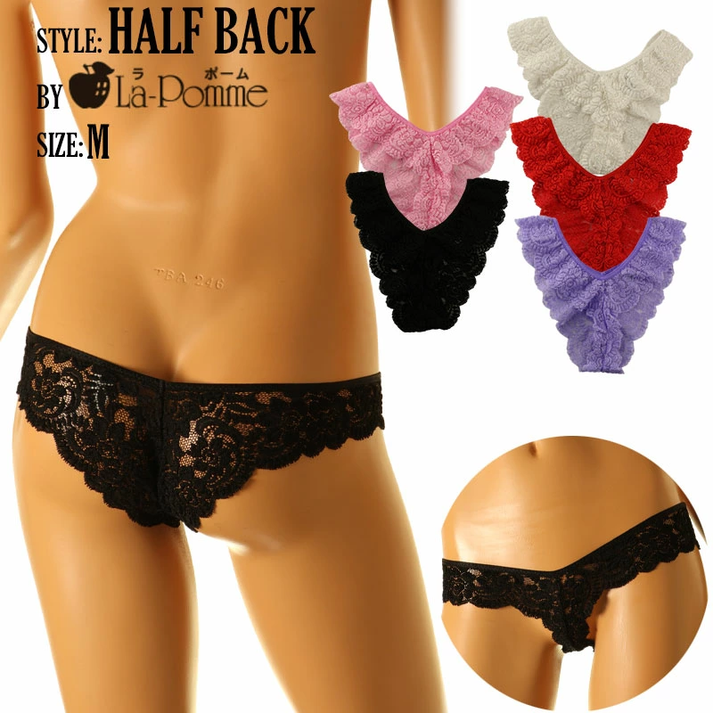 透け感があり伸縮性のあるストレッチレースを使ったハーフバックショーツになります。股上が浅くローライズタイプになったセクシーランジェリーになります。
