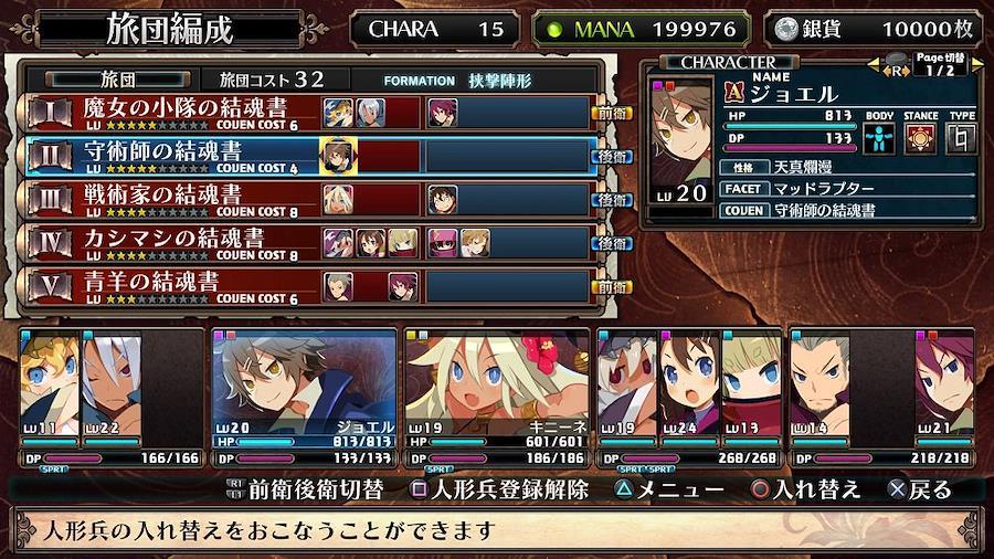 前人未到、人跡未踏。これは、こわいこわい、迷宮と魔女のお話。とある辺境の街『ルフラン市』。一度入れば二度と生きては戻れないという前人未到の『地下迷宮』がありました。ある時、一人の『魔女』がやってきて、迷宮探索に乗り出します。魔女の手には「迷宮探索唯一の生き残り」が残したと言われる一冊の書物『妖路歴程』が握られていたのでした―――。プレイヤーは “1冊の本"となり、地下迷宮の攻略へと乗り出します。引き連れるのは、“人"でも “動物"でもない、魔女が作り出した“人形兵"。物言わぬ彼等と、1冊の本からなる特異な集団“魔女ノ旅団"が迷宮に挑む時、妖しげな都を舞台に、摩訶不思議な物語が幕を開ける。本作では、“カヴン"と呼ばれる人形兵の集団を率いて迷宮探索を行います。迷宮探索には、複数のカヴンを連れて行くことができ、戦闘に参加可能な人形兵の数は最大で40人にものぼります。最大40人の人形兵が攻防を繰り広げる集団戦、それが“魔女ノ旅団"の戦い方です。人形兵はベースとなる"ファセット" (職業) を複数から選択可能です。ファセットごとに性能や得意とする戦い方が違っているので、必要とする戦力とファセットの性質を見定め、最適な人形を制作しましょう。また、キャラクターの見た目はもちろん、性別や、スキル、ステータスの成長具合等、細かな所まで設定ができます。