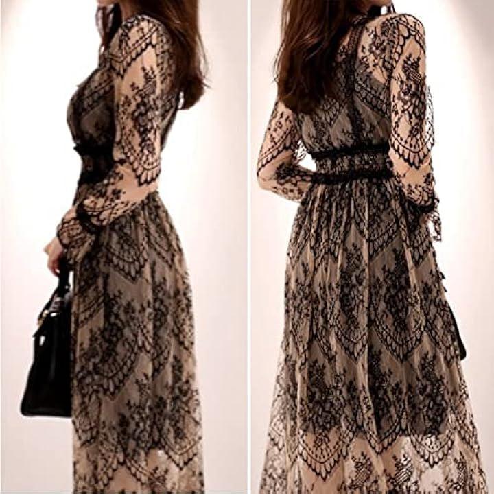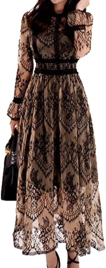 透け感たっぷりの総レースで高級感抜群、ロマンティックなムードが漂うワンピース、パーティードレスです。
