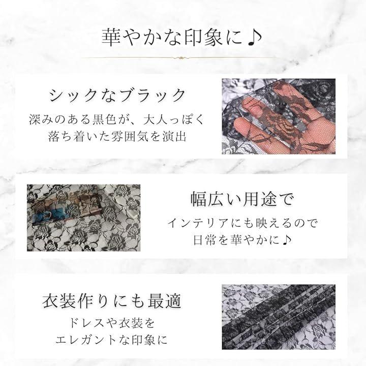 エレガントな花柄刺繍レース:繊細なバラ柄が美しくデザインされた柔らかな風合いのチュールレース生地で、作品に高級感と上品さをプラスします。