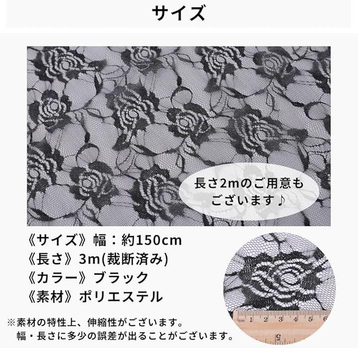 《サイズ》幅:約150cm 《長さ》2m / 3m(裁断済み) 《カラー》ブラック 《素材》ポリエステル *素材の特性上、伸縮性がございます。