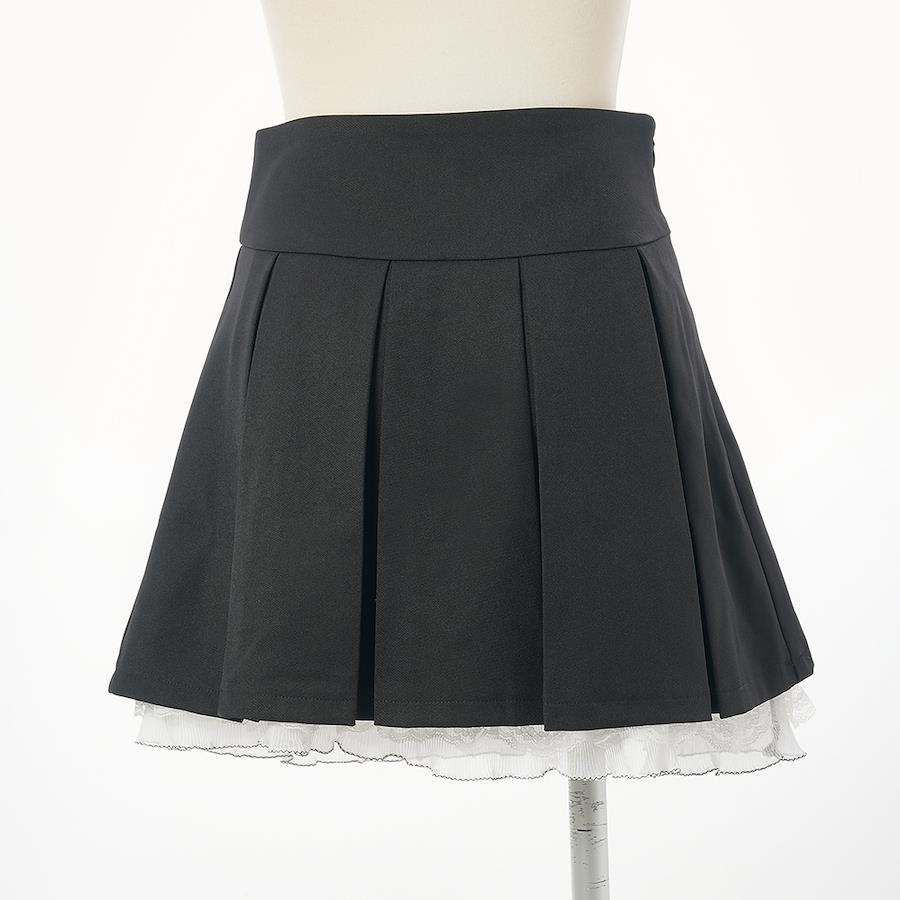 裾レースが可愛いボックスプリーツスカートのご紹介。【デザイン】旬なガーリーディテールを取り入れたボックスプリーツスカートが登場♪裾レースがコーデのアクセントになってくれて、物足りないコーデも可愛く仕上がります。ハイウエストデザインで、ウエストもきゅっと見せてくれてスタイルUP効果も♪左脇ファスナーを開閉して着用する仕様です。ウエストゴム無しになります。