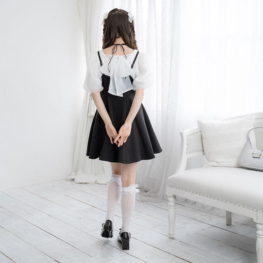 丸襟ブラウスやボウタイブラウスを下に重ねて、王道のフレンチガーリーコーデもおすすめ◎