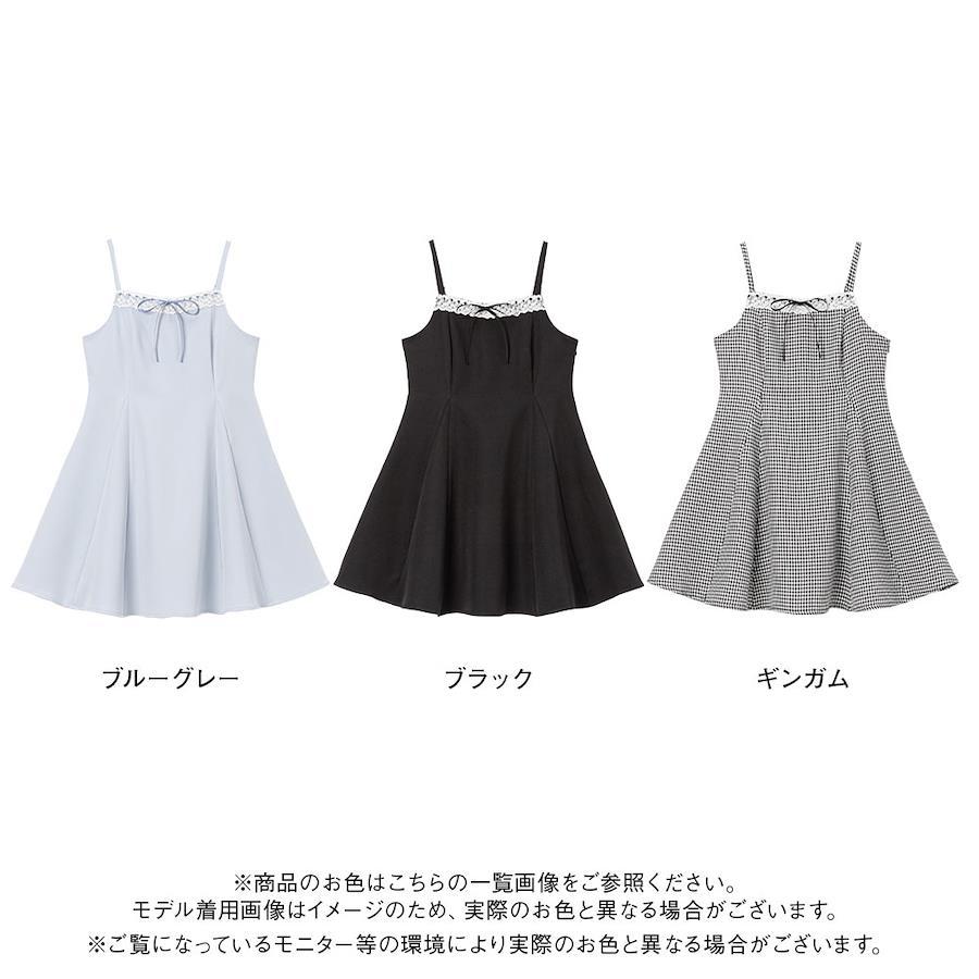 華奢な肩紐と胸元のリボンが甘くなりすぎず、程よく上品な印象に◎