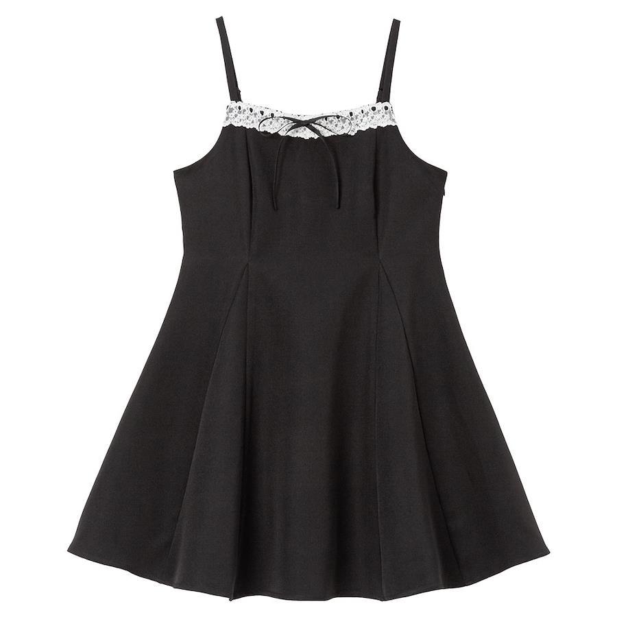 華奢な肩紐と胸元のリボンが甘くなりすぎず、程よく上品な印象に◎