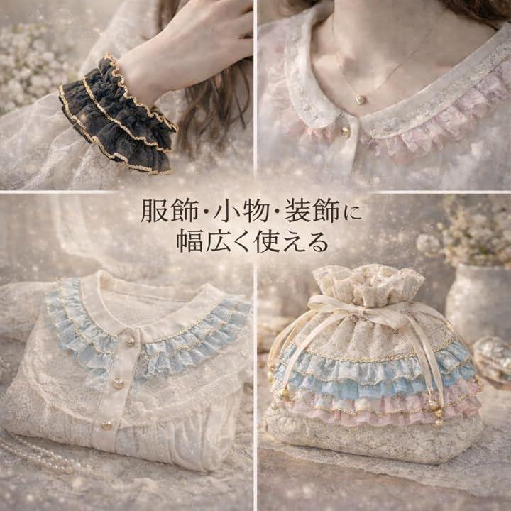 「服飾・小物・装飾など幅広い用途応」 洋服の縁取りやリメイク、ヘアアクセサリー、バッグ・ポーチの装飾、ラッピングやインテリア小物まで幅広く使用可能。