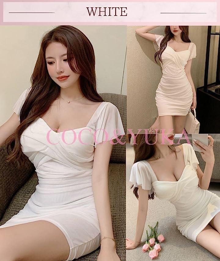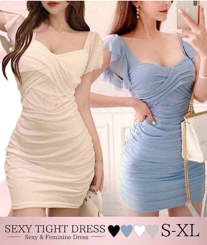 ・パーティー ドレス や キャバ嬢 ドレス にも ぴったりな 半袖 タイト ミニ ワンピース です。 チュール レース の袖が可愛く、 胸元 も セクシー に盛れるデザインです。