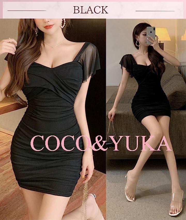 ・パーティー ドレス や キャバ嬢 ドレス にも ぴったりな 半袖 タイト ミニ ワンピース です。 チュール レース の袖が可愛く、 胸元 も セクシー に盛れるデザインです。