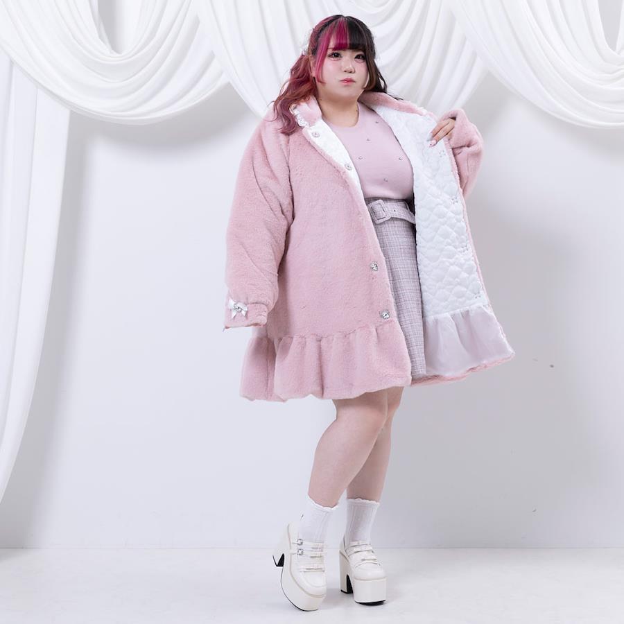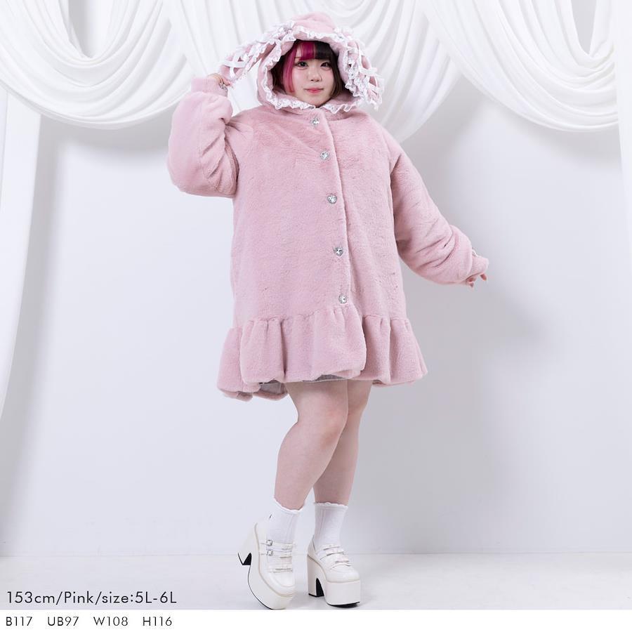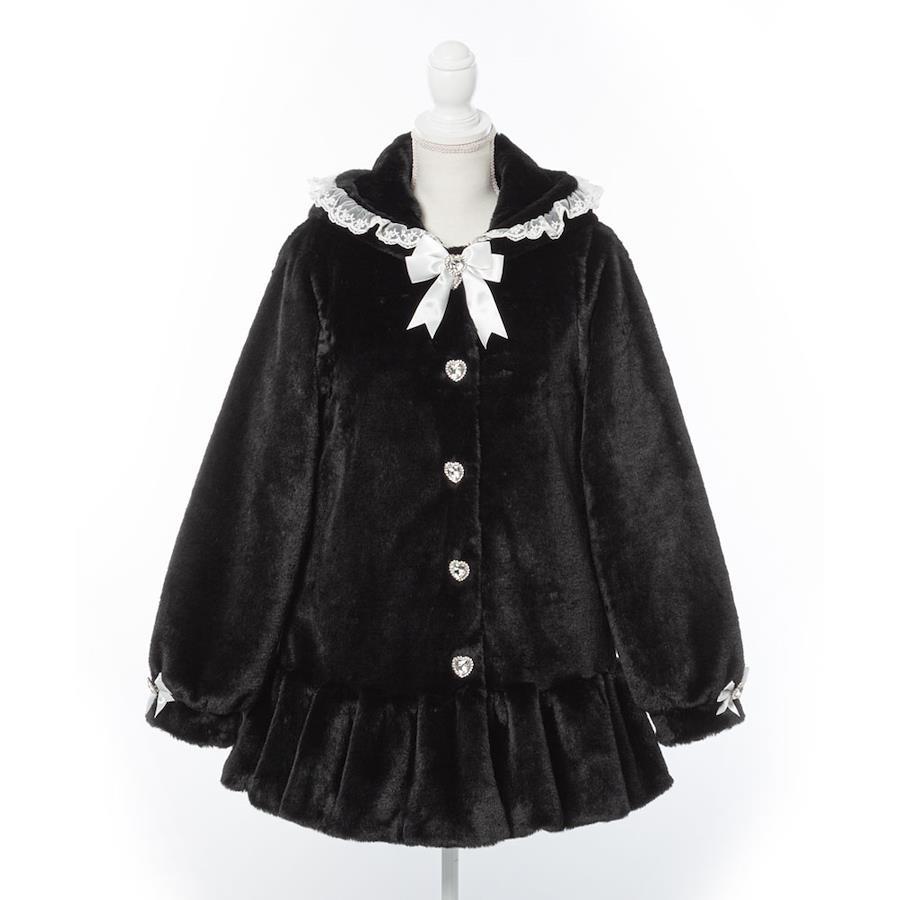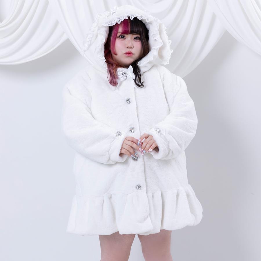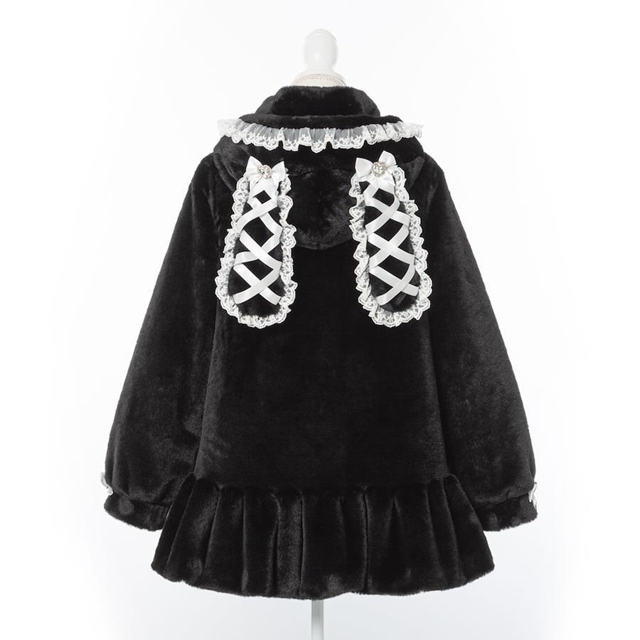 ハートビジューにレースアップうさみみがかわすぎるファーコート