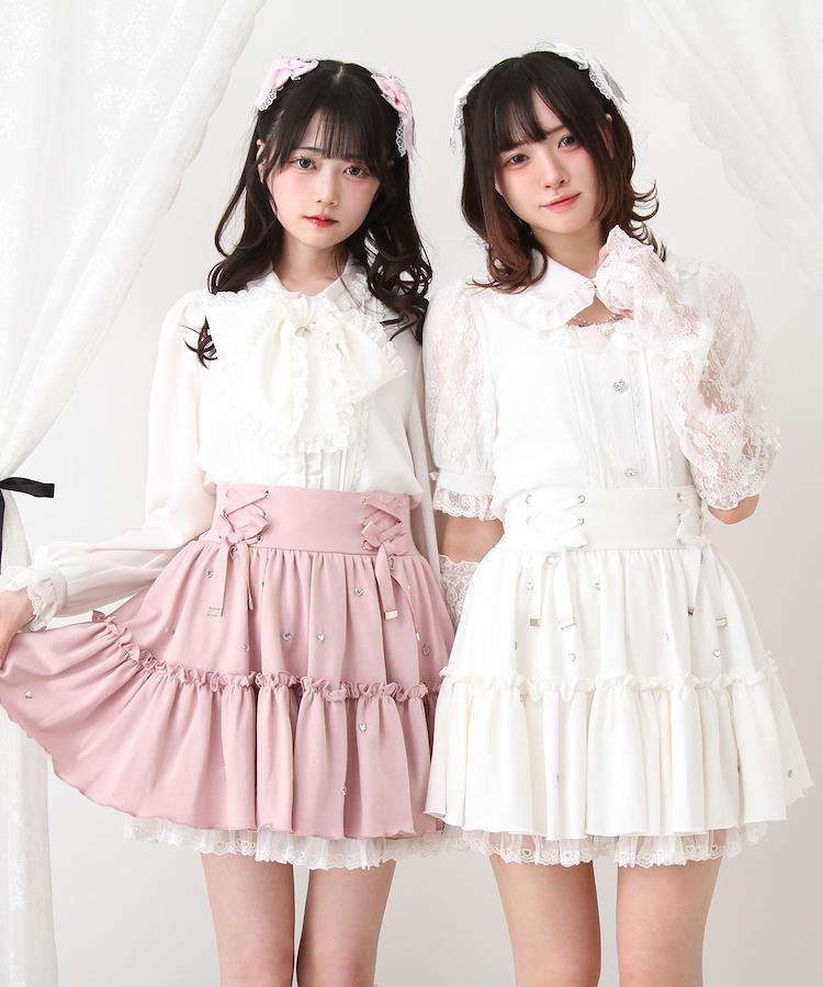 キラキラハートストーンが散りばめられたかわいい裏毛スカートが登場♪【デザイン】ハートストーンが散りばめられたかわいい裏毛スカートです♪ウエストデザインにはレースアップがポイントになっています。フリルたっぷりのふわっとしたシルエット感がかわいいく裾にはハートレースがついています。かわいくて万能な裏毛スカート、是非ともオススメです。【素材】厚すぎず薄すぎない裏毛生地です。【コーディネート】ハートストーンの裏毛ショートパーカーと合わせるとトレンド感あるスポーティーでかわいいコーデが完成します♪これからの季節、Tシャツやカットトップスにも合わせるとかわいいです!《透け感》なし 《生地の厚さ》普通 《裏地》あり 《伸縮性》なし《生産国》中国