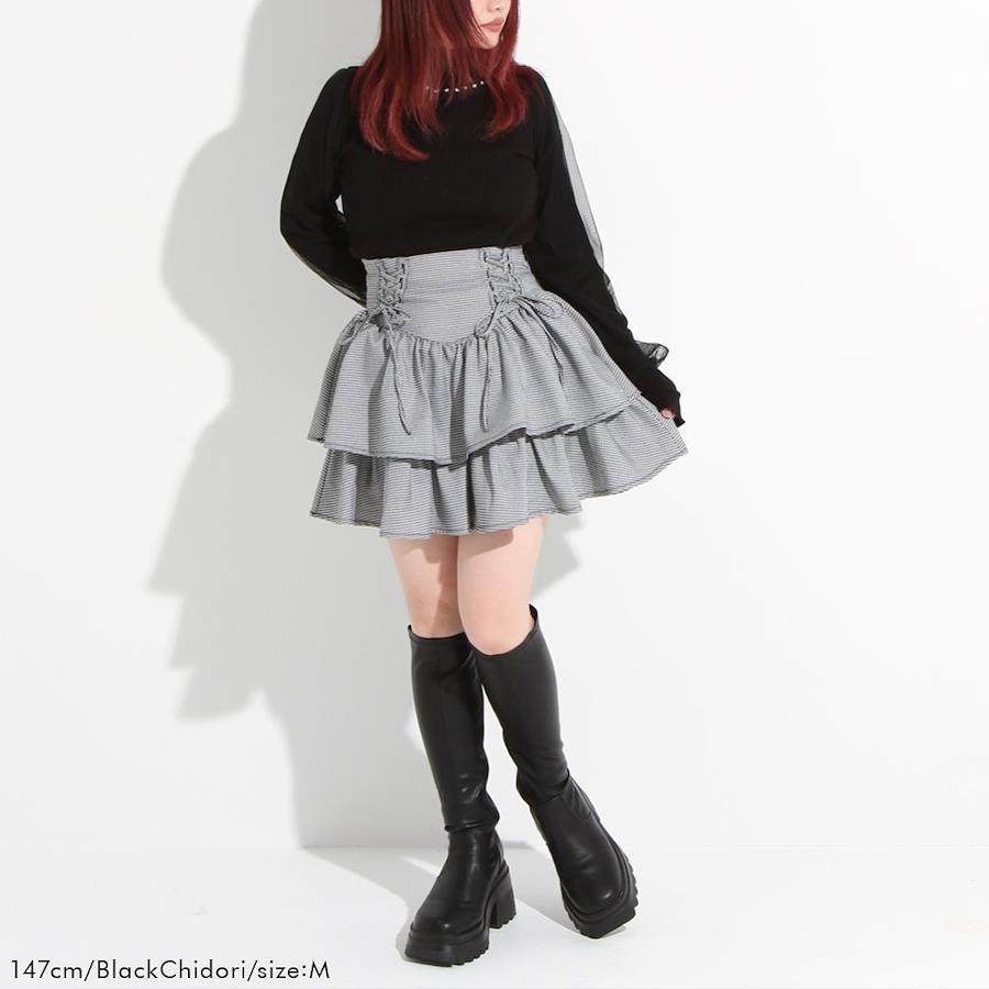 ウエストはコルセットのようなデザインになっており、レースアップがコーデのアクセントに◎