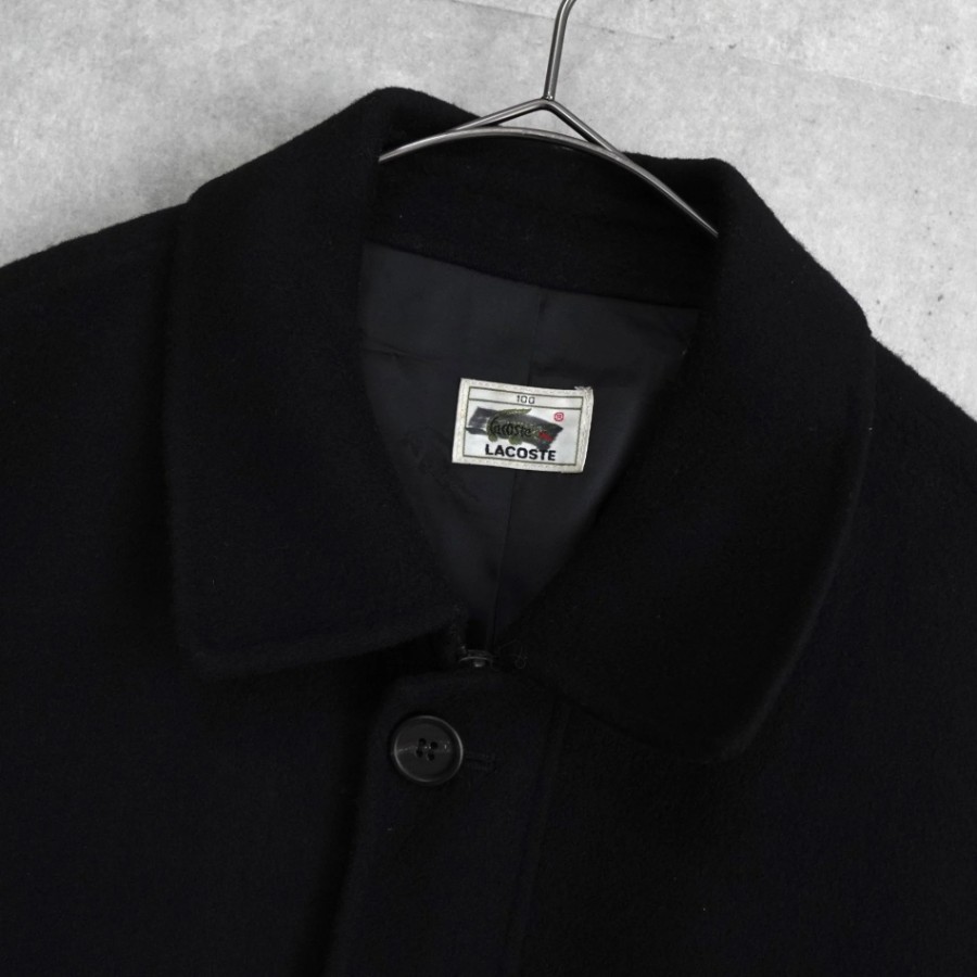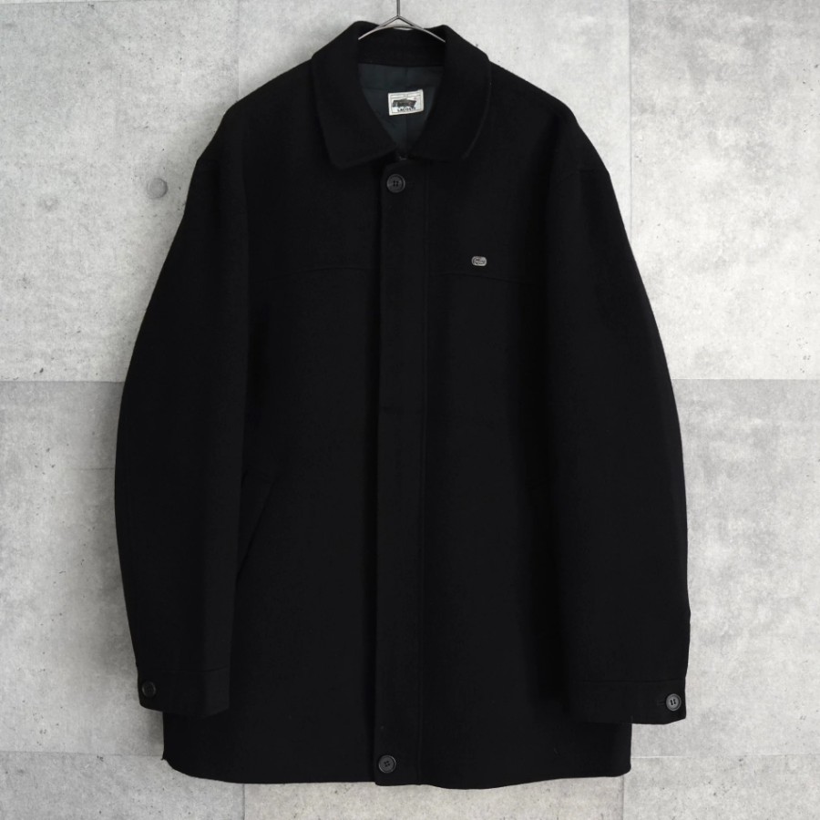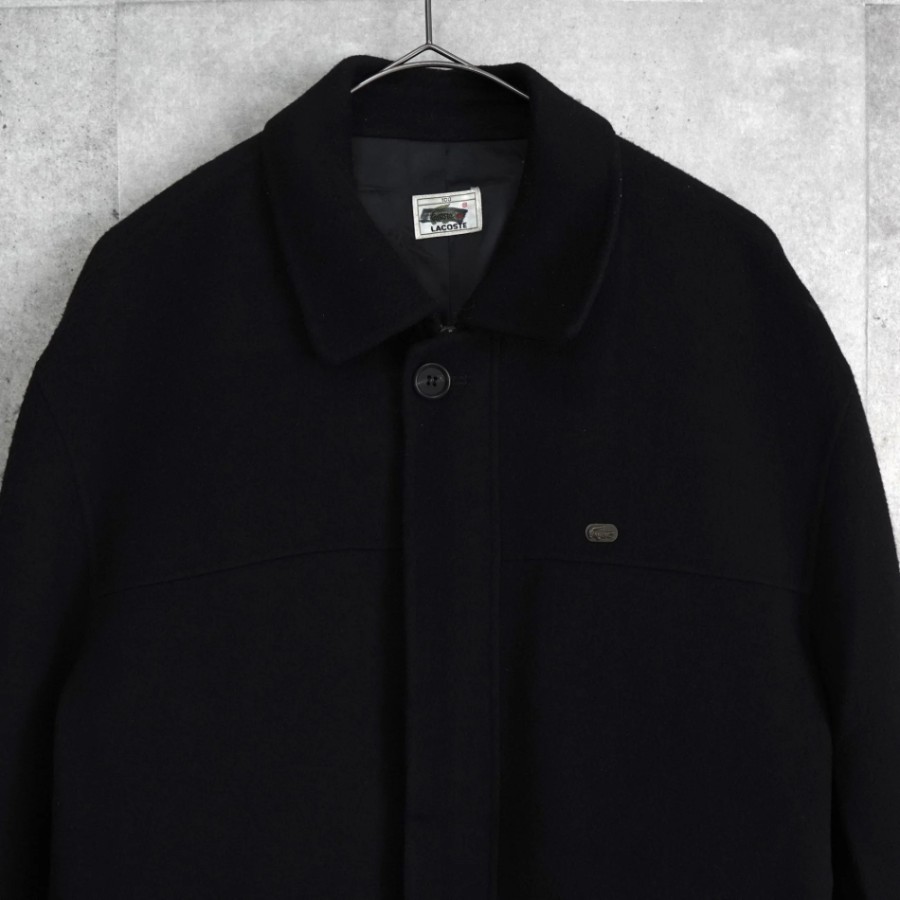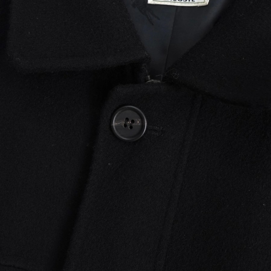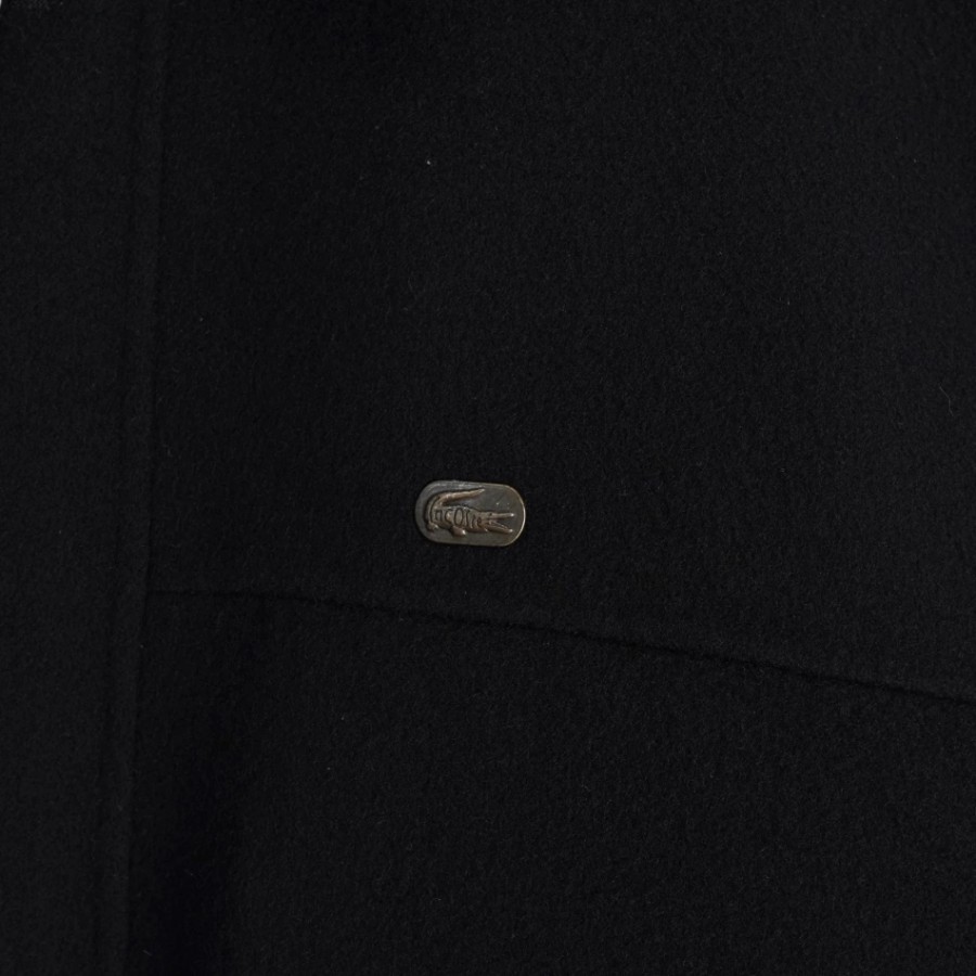 Lacoste Logo Patch Wool Coat, Mid-Length Coat, Black