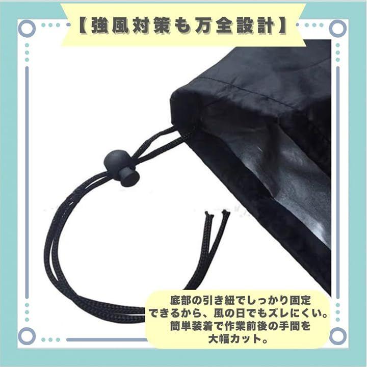 「強風対策も万全設計」底部の引き紐でしっかり固定できるから、風の日でもズレにくい。
