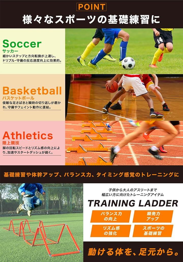 サッカー・バスケ・ラグビー・陸上など、多くのスポーツでプロ・アスリートも実際に使用しているトレーニングツールです。