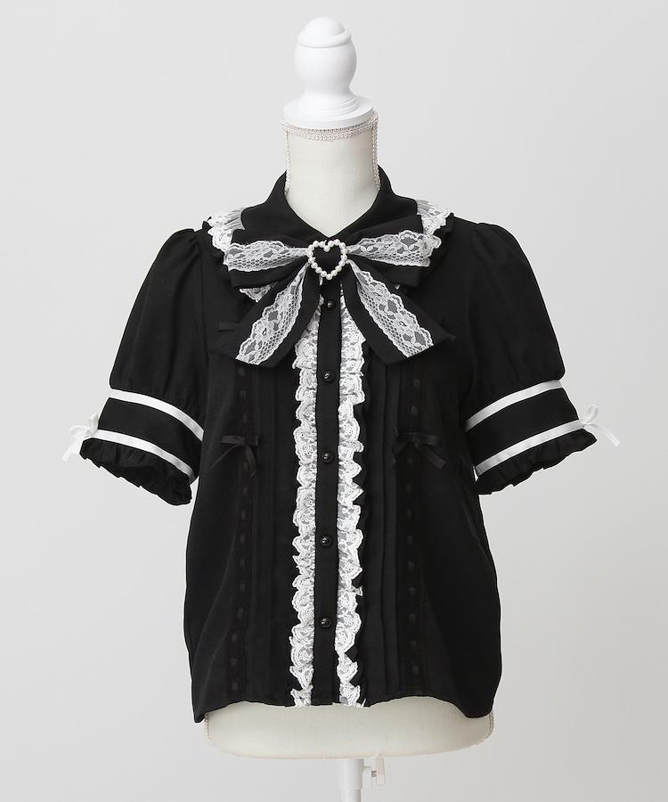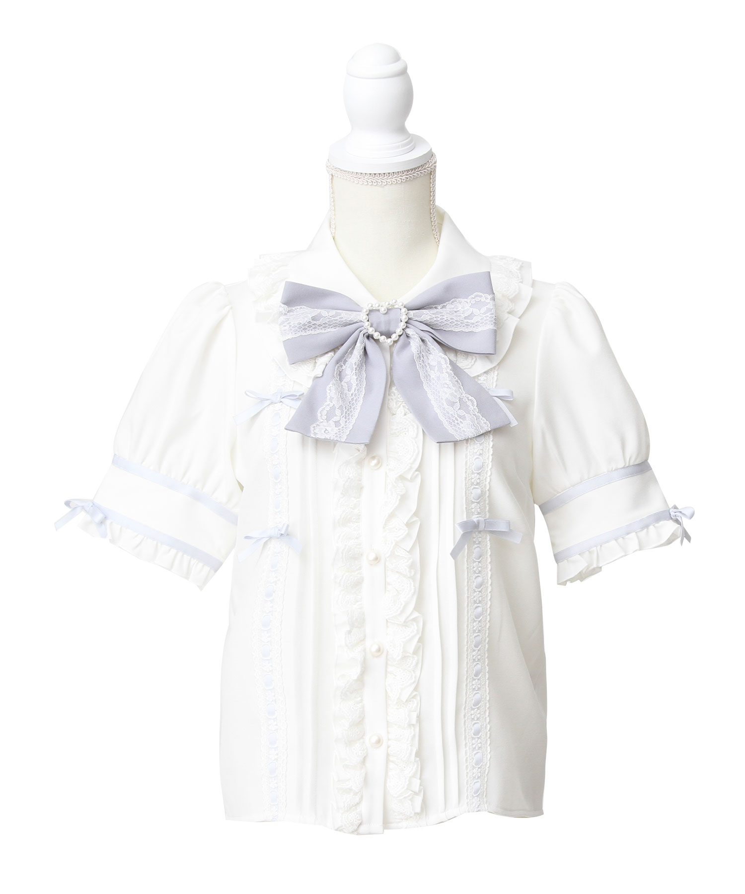 はしごレースがあしらわれたリボンたっぷりのかわいい丸襟ブラウスが登場♪