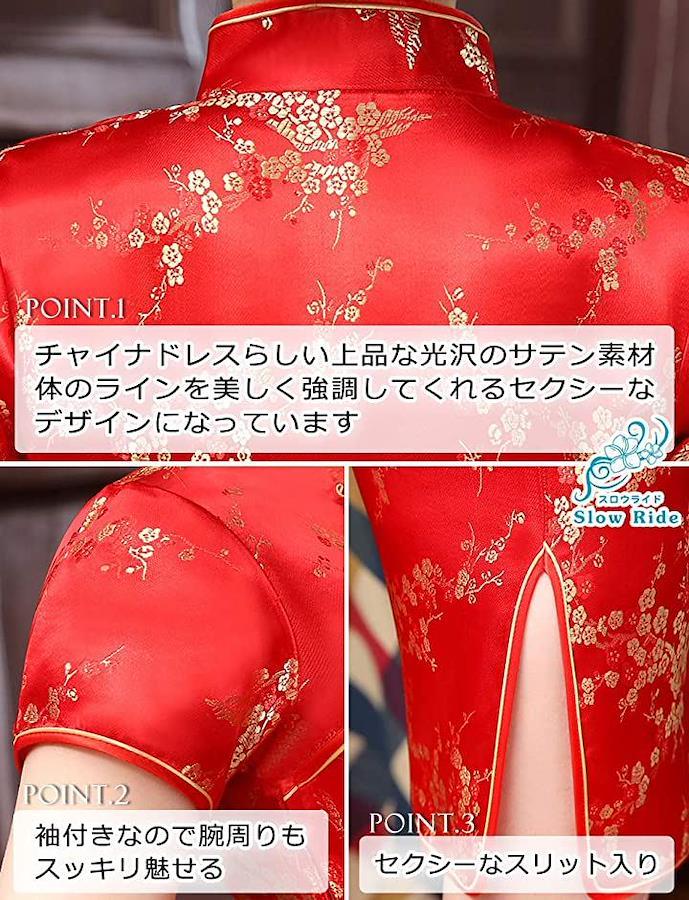 ・つるつるとした薄手の柔らかいサテン素材で、心地よい着心地のチャイナドレスです・チャイナドレスらしい上品な光沢と、体のライン を美しく強調してくれるセクシーなデザインになっています。