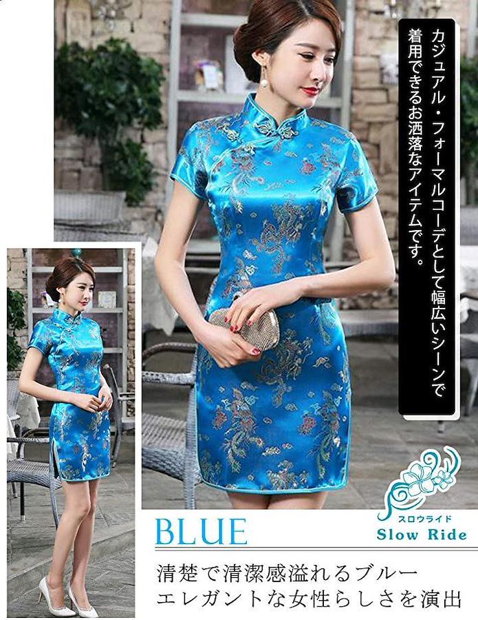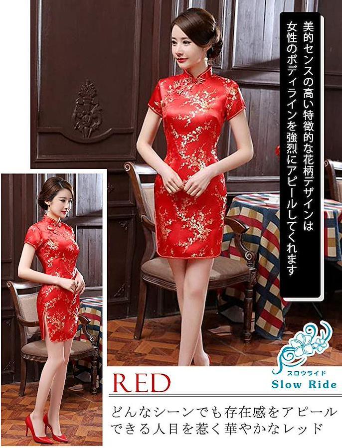 ・つるつるとした薄手の柔らかいサテン素材で、心地よい着心地のチャイナドレスです・チャイナドレスらしい上品な光沢と、体のライン を美しく強調してくれるセクシーなデザインになっています。