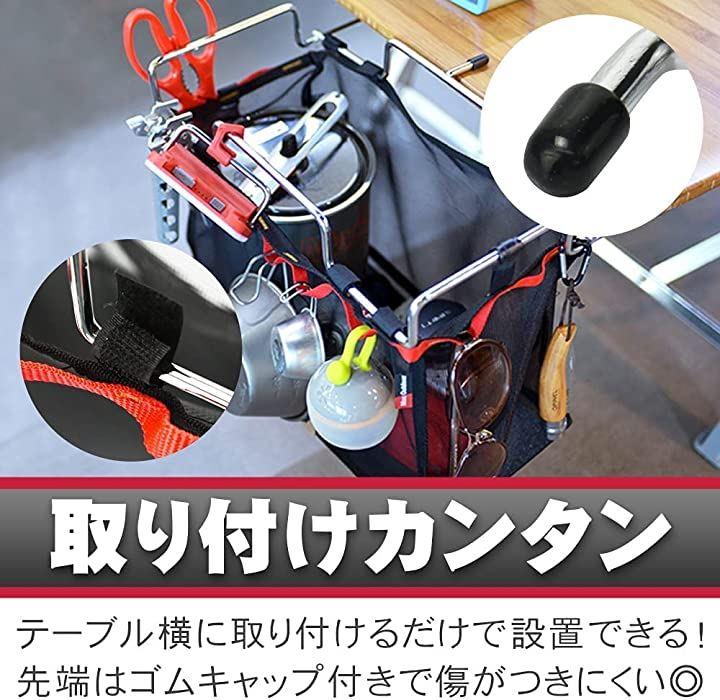 底が深く幅広いマチで収納力抜群。アウトドア、キャンプテーブルのサイドに設置してご使用いただけます。