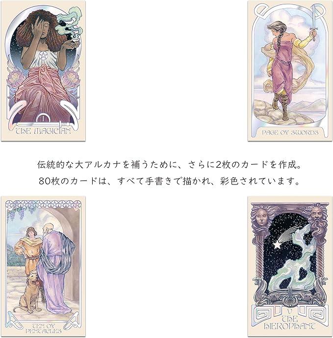 ■商品説明【メーカーオリジナル140ページのフルカラーイラストブック付き】[正規品] 【オリジナル日本語解説書付き】タロットの占い方からカードの正位置・逆位置の意味まで解説されているので、初心者でも安心して遊べます。(商品専用の和訳解説書ではございません) 【絵柄がつきわかりやすいカード】大アルカナカード24枚、小アルカナカード56枚、計80枚からなるタロットカード。 【サイズ】 ハードケース:7.6cm x 12.7cm 日本語解説書:5.5センチ×15.5cm タロットカード:5.8cm x 12.7.cm 枚数:80枚(大アルカナカード24枚 小アルカナカード56枚)?もっと見る