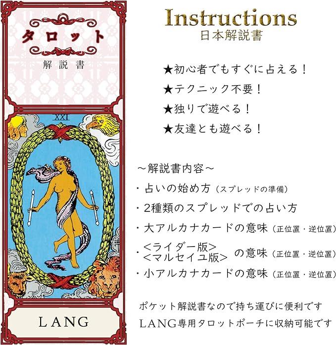 この商品について 【メーカーオリジナル140ページのフルカラーイラストブック付き】[正規品] 【オリジナル日本語解説書付き】タロットの占い方からカードの正位置・逆位置の意味まで解説されているので、初心者でも安心して遊べます。(商品専用の和訳解説書ではございません) 【絵柄がつきわかりやすいカード】大アルカナカード24枚、小アルカナカード56枚、計80枚からなるタロットカード。 【サイズ】 ハードケース:7.6cm x 12.7cm 日本語解説書:5.5センチ×15.5cm タロットカード:5.8cm x 12.7.cm 枚数:80枚(大アルカナカード24枚 小アルカナカード56枚)もっと見る