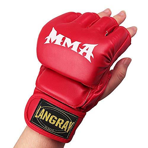 ハーフフィンガーのデザインで、親指の部分はオープンの帯状で、手のひらと指を完全に固定でき、トレーリング中にグローブの落ちることがありません。 ※ご注意:当商品はLangRayの正規品なので、LangRayのみの商品を購入してから三ヶ月間返品・返金の保証をいたします。拳骨部分は超高密度耐衝撃性パッドを採用して、衝撃を和らげ、有効的に手を守られます。指先が空いているため指先の感覚が鈍くなることはありません。空手や総合格闘技やテコンドーなどでお使いいただけます。手首はマジックテープ式で、自由に調節でき、また手首をしっかり保護できます。上級者だけでなく初心者の方でもスムーズに脱着可能。クッション以外の部分は通気性に優れた加工となるので、心地よいです。いやな臭いによる細菌の繁殖をさせないようにします。素材:合皮レザー 重量(片側):約0.22kg、8オンス サイズ:22*11*2.5cm。新版と旧版はランダムに出荷する時期なので、ご理解くださるよう、お願いいたします。