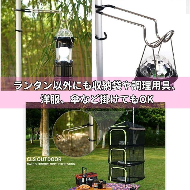 「幅広く活躍できる」ランタン以外にも収納袋や調理用具、洋服、傘など掛けたりもできアウトドアを不便なく充実させてくれます。