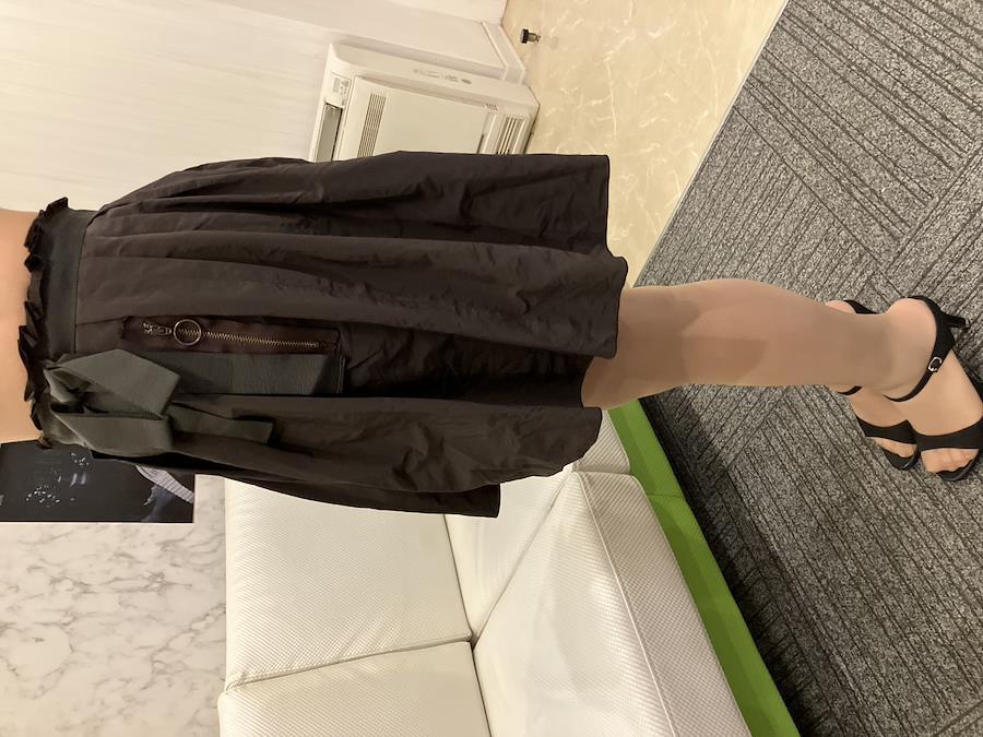 【モデル情報】身長157cm/バスト95-100cm/ウエスト65cm/ヒップ90cm/股下70cmモデル着用時、ハイウエストぎみで着用。膝上丈でふんわりとした印象です。