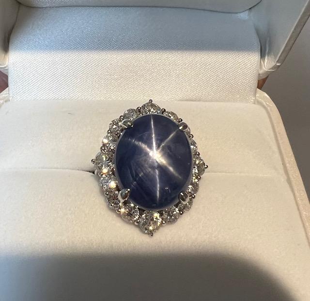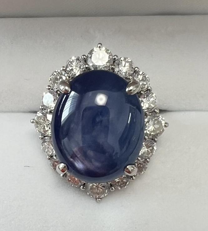 このサイズでもスターの目もはっきりと出てるスターサファイアダイヤモンドリングです