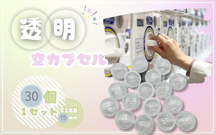 「中身が見える。透明カプセル75mm 30個セット」 イベントや収納に大活躍。中身が一目でわかる便利な透明カプセルのセットです。