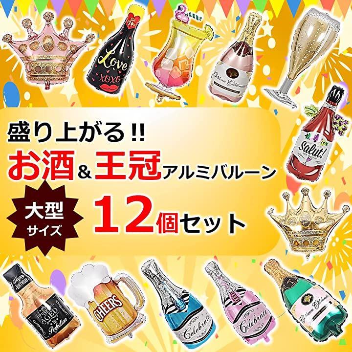 大型サイズ アルミバルーンお酒&王冠12個セット・