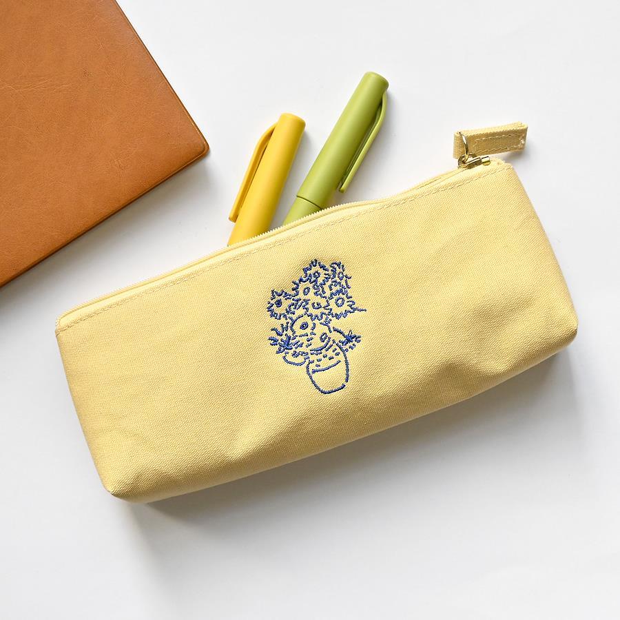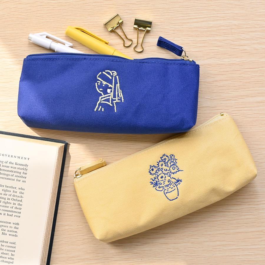 【キャンバスペンケース】帆布の生地のシンプルで使いやすい形のペンケース。誰もが知っている有名な美術作品をラフなタッチでアレンジした刺繍がポイント!マチがあるのでたくさん入れられます。内側は汚れに強いラミネートコーティング加工です。