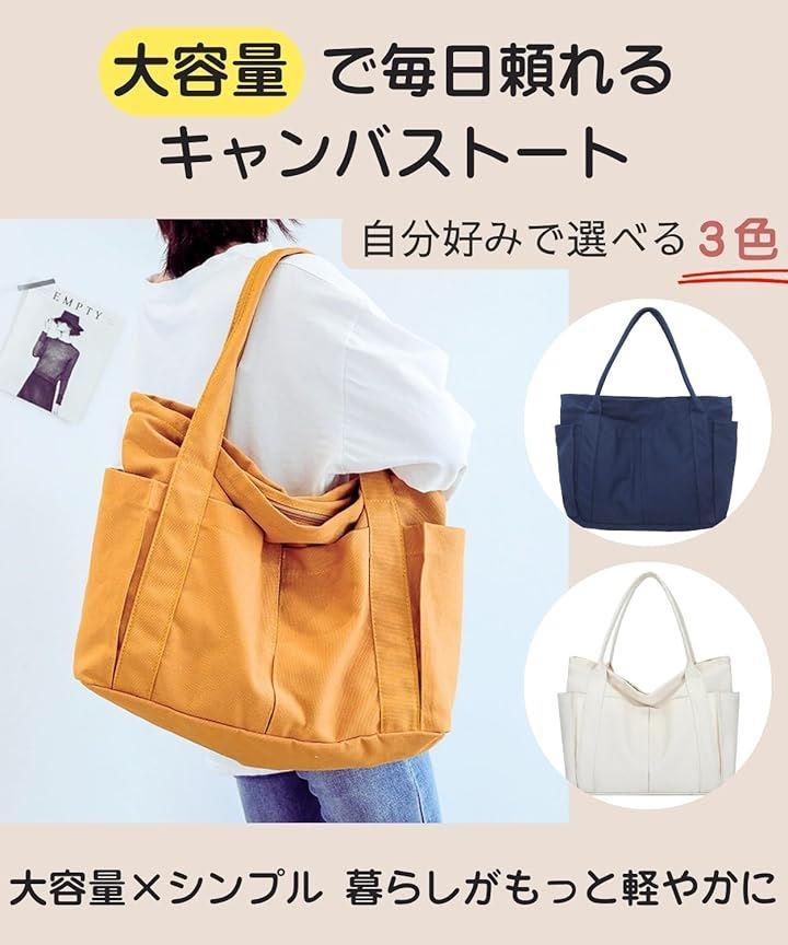 「大容量で毎日頼れるキャンバストート」 荷物が多い日でも安心の大きめトートバッグ。
