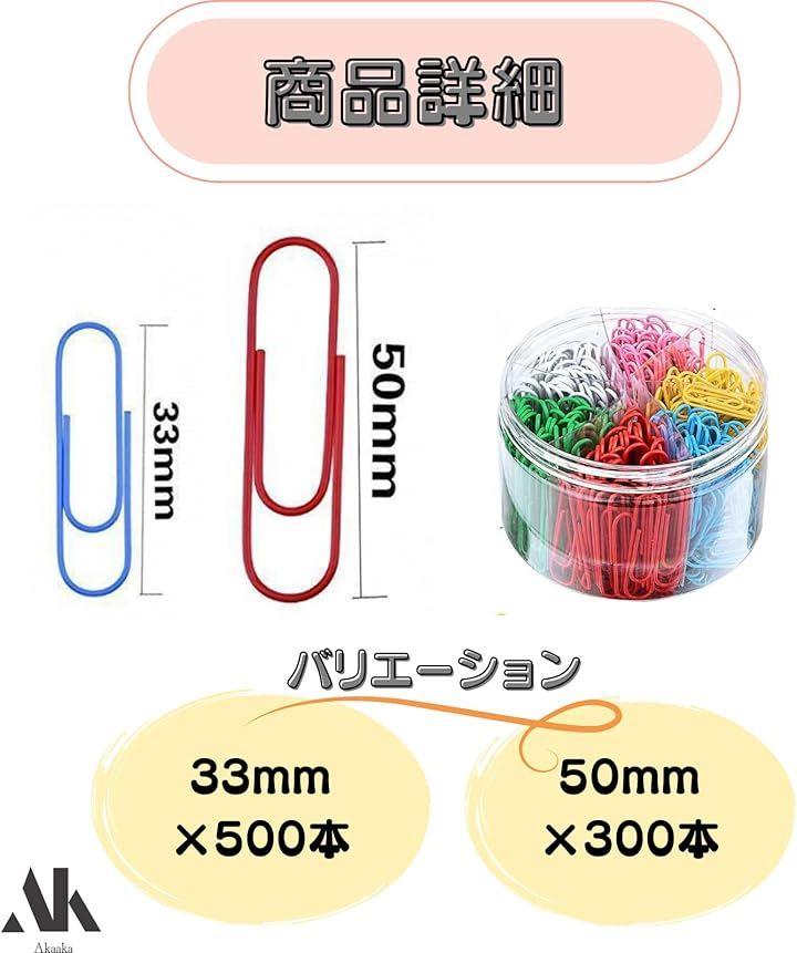 「商品スペック」セット内容:33mmx500本/50mmx300本、カラー:多色アソート、ケース材質:プラスチック