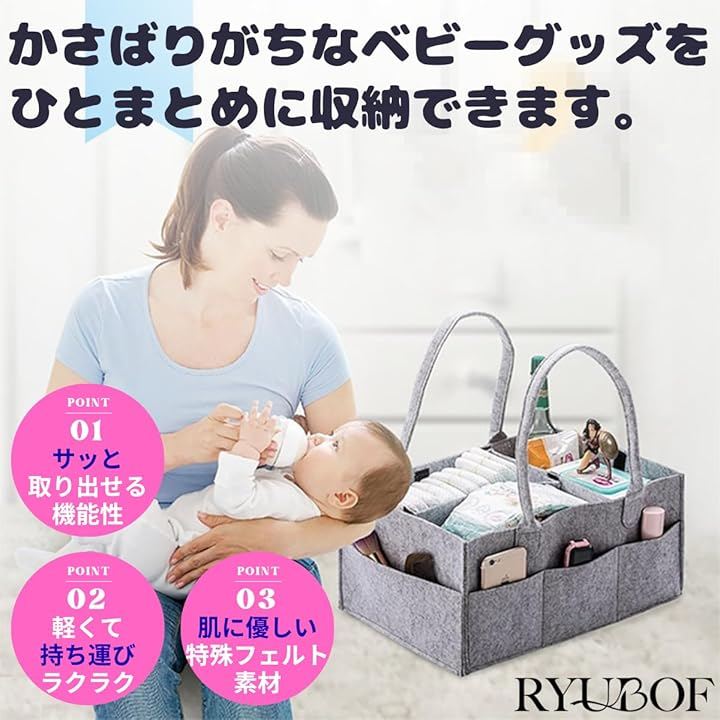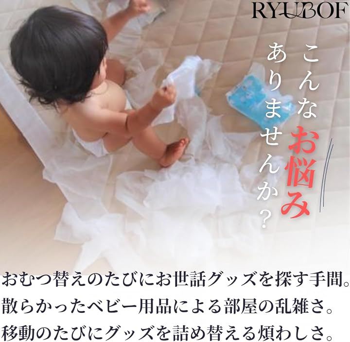 「オムツストッカー」この収納ケースはオムツをはじめ哺乳瓶おしりふきおむつ替えマットおもちゃタオルなど子育てに必要なアイテムを一括で整理整頓できる大容量のオムツ収納バッグです。