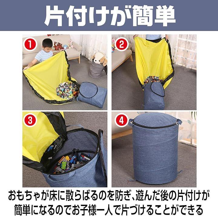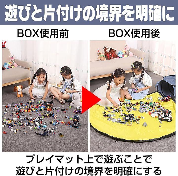 「3秒で片付け完了、散らばるブロックを紐一つで魔法のように回収」細かなブロックやミニカーが床一面に広がり、拾い集めるだけで一苦労…そんな毎日の悩みを解決する収納ボックスです。