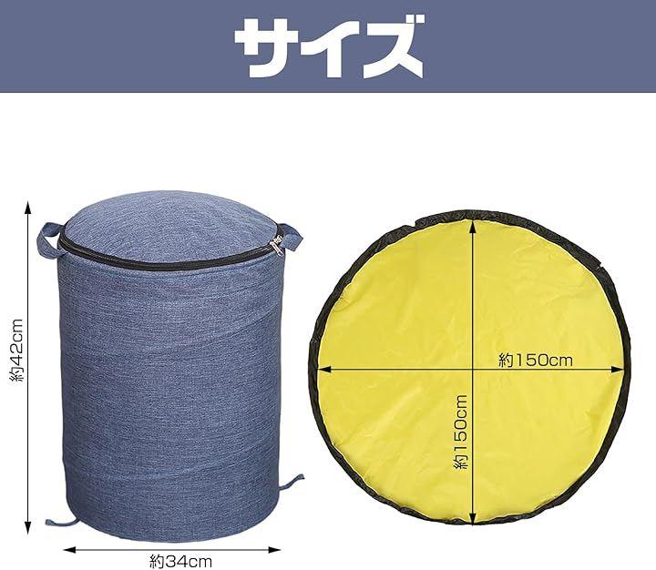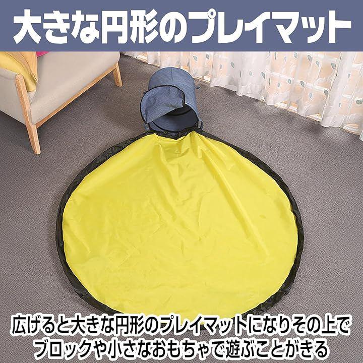 広げれば直径140cmの広々としたプレイマットになり、遊び終わったら紐をキュッと絞るだけで、おもちゃを丸ごとボックスの中へ。