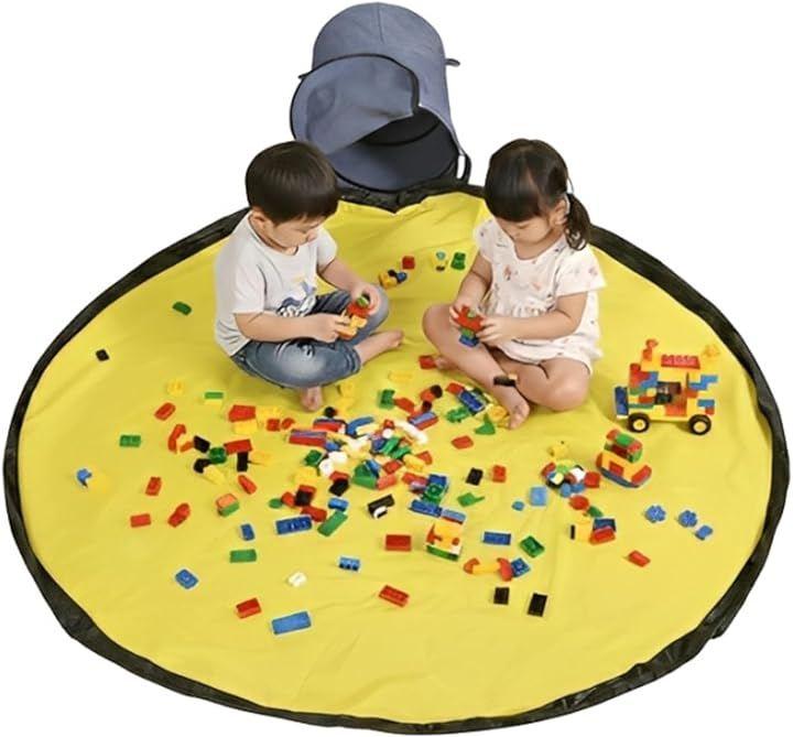 Large Capacity Drawstring Toy Storage Box with Lid, Block Storage, Play Mat