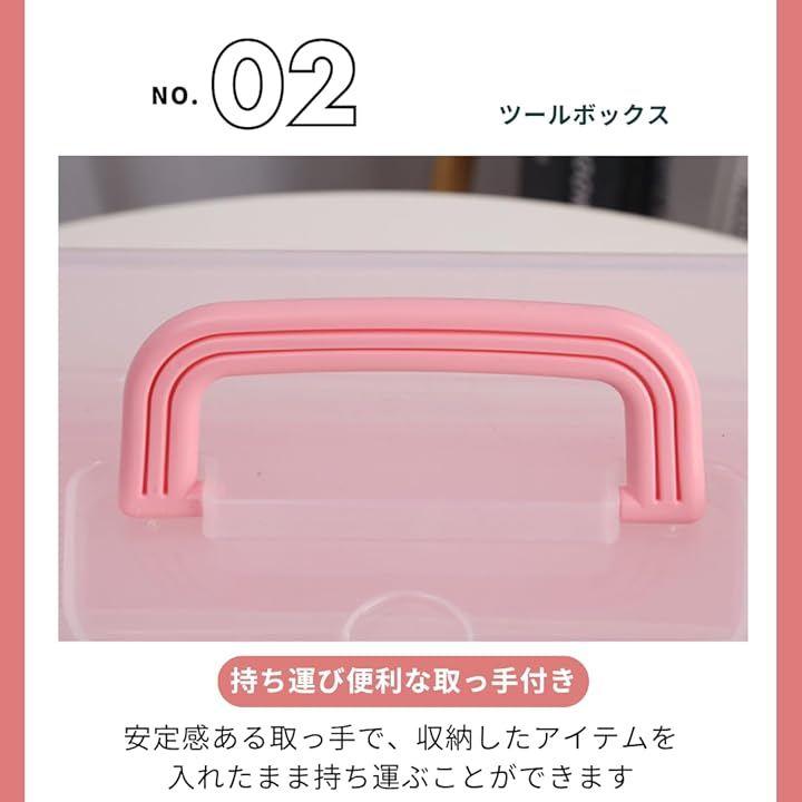 「持ち運びに便利な取っ手付き」安定感ある取っ手で、収納したアイテムを入れたままでも持ち運べます。