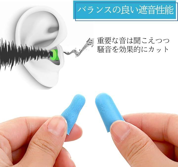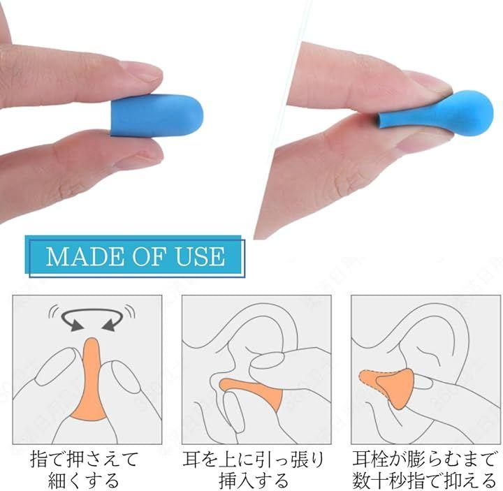 「快適フィット、簡単装着」ソフトフォームの耳栓で、指先で簡単に形を変えられ、耳にすっぽりとフィット。