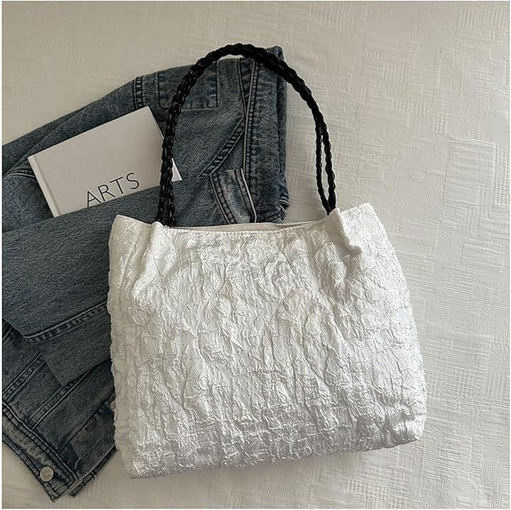 肩掛けできる長めの編みハンドルが、可愛さと機能性を両立。