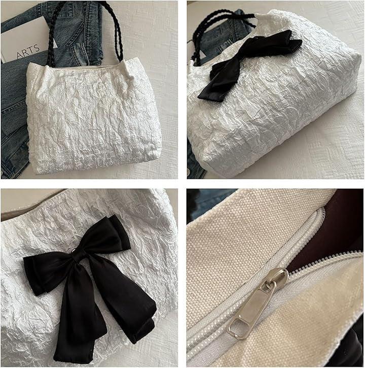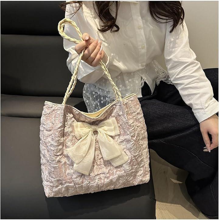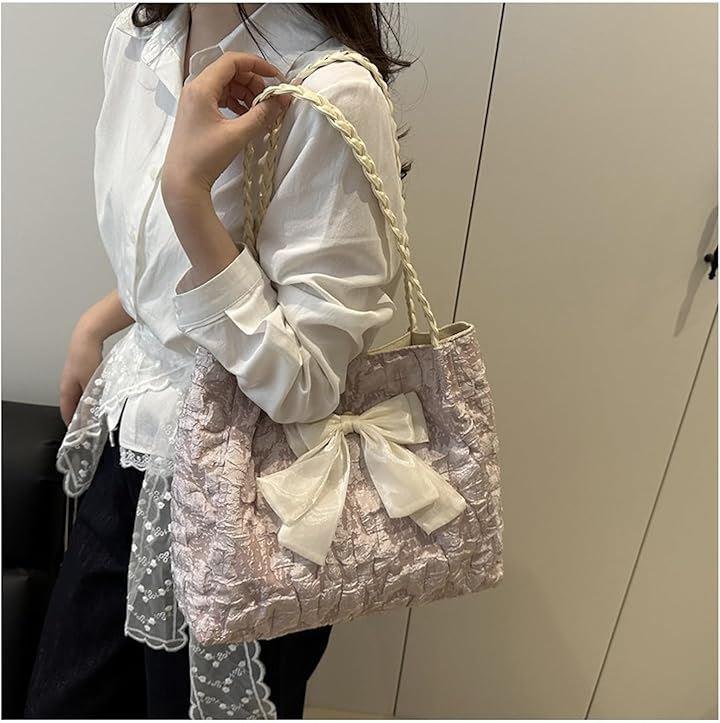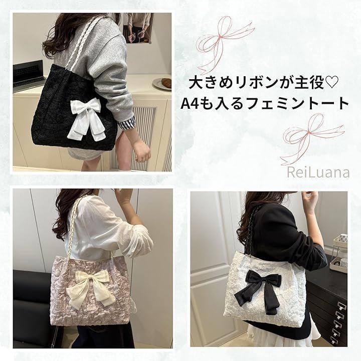 バッグの中央には大きめのリボンがあしらわれており、コーデの主役になる存在感です。